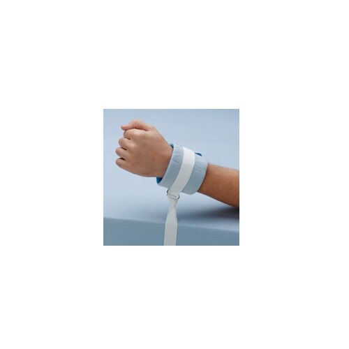 For patients assessed to be at risk of disrupting life-saving treatment or whose picking, pulling, scratching, or peeling exacerbates a skin condition, causes self-injury, or compromises wound site integrity. Foam ankle and wrist restraint. Secures with hook and loop. Secures to movable portion of the bed with quick-release tie. Adjustable size fits pediatric or adult limb. Wrist circumference 4" to 12" (10-30 cm)